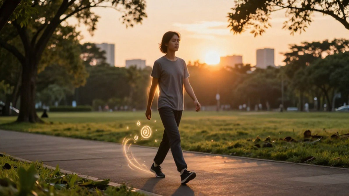 Setelah seharian bekerja, pikiran sering dipenuhi oleh tekanan dan beban tugas. Meditasi jalan membantu menenangkan sistem saraf dan menurunkan kadar hormon stres seperti kortisol. Dengan fokus pada langkah dan napas, pikiran yang kacau dapat diarahkan kembali ke momen saat ini, sehingga tubuh dan pikiran lebih rileks.