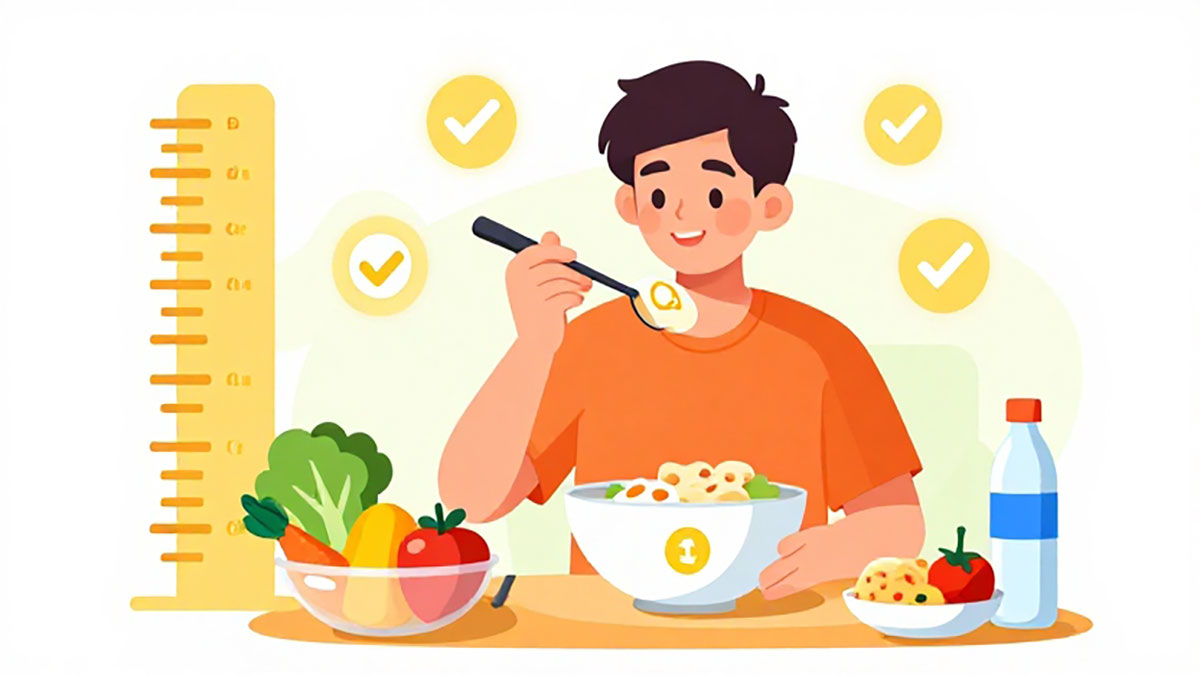 Dengan mengonsumsi makanan yang seimbang, tubuh tetap mendapatkan nutrisi yang diperlukan tanpa harus makan berlebihan.